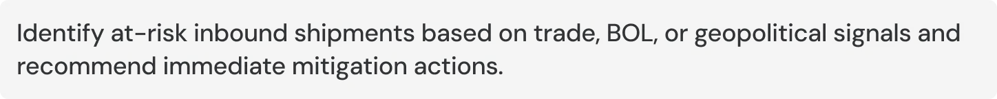 Mitigate inbound logistics disruption in the Gulf/LATAM corridor: 2 vessels trending 4–6 days late, 1 shipment flagged for BOL inconsistencies, and regional instability increasing supply volatility within 2–4 weeks.